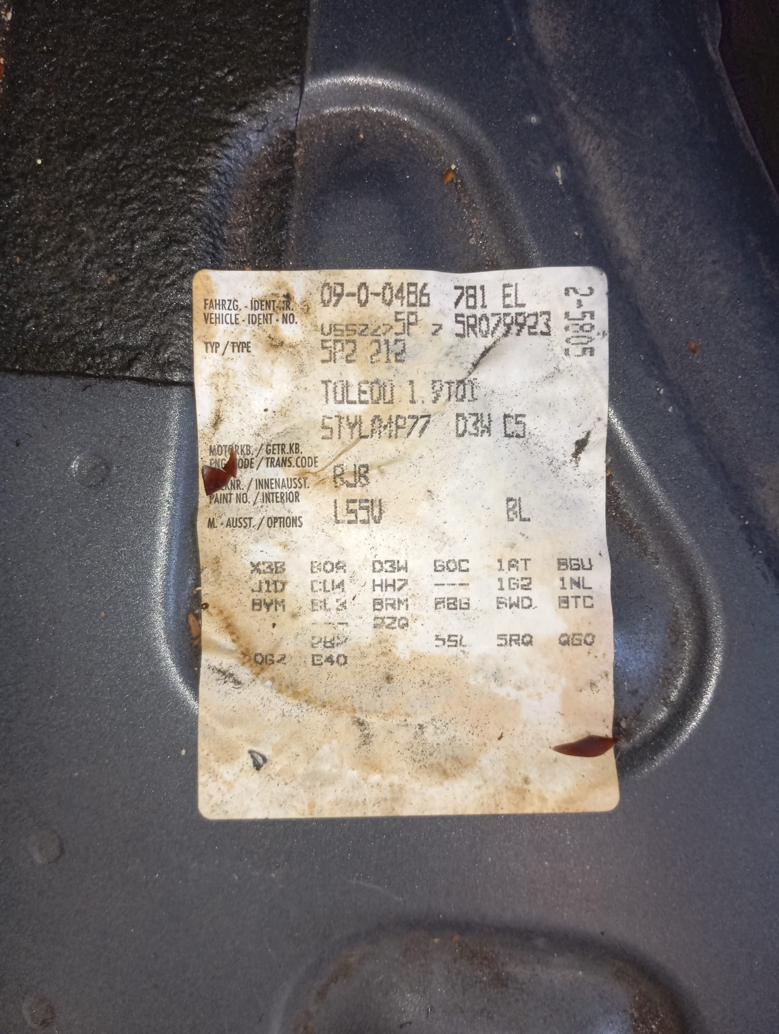 Infos du véhicule d'origine