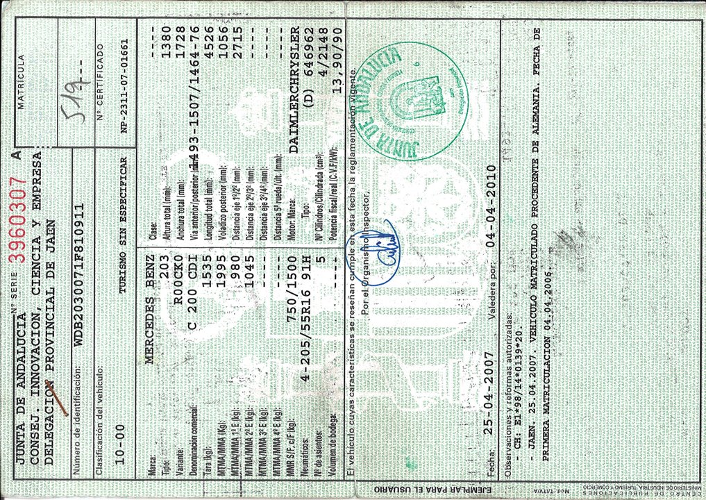 Infos du véhicule d'origine