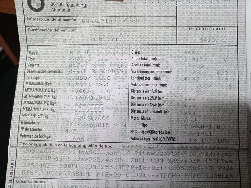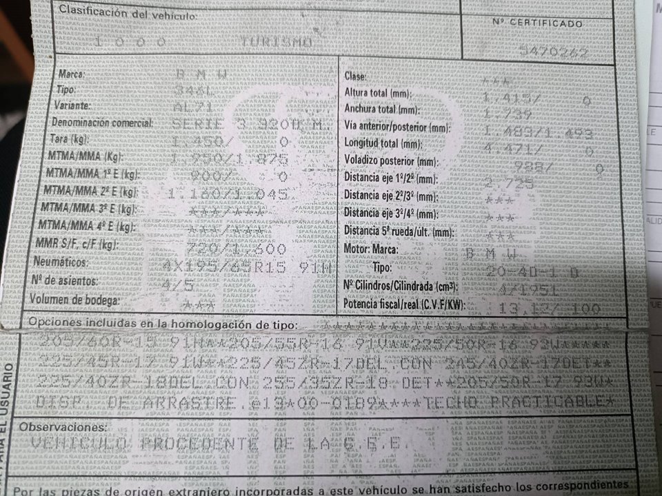 Infos du véhicule d'origine