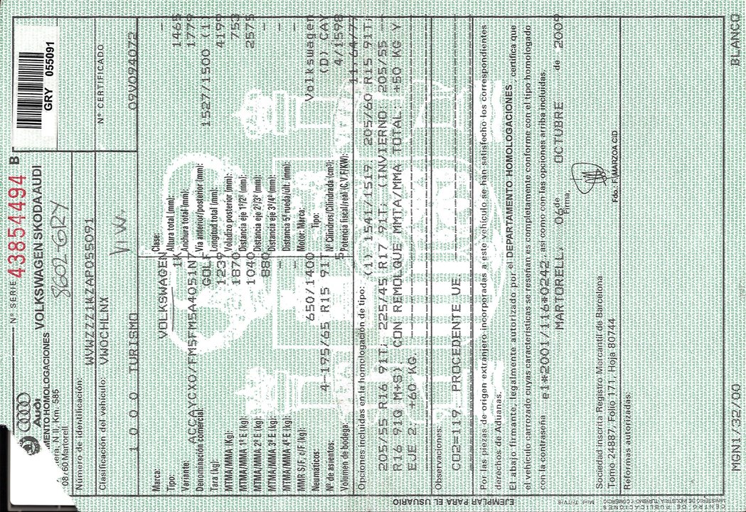 Infos du véhicule d'origine