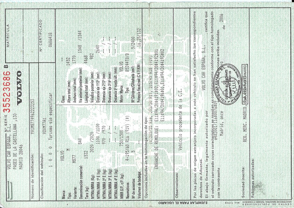Infos du véhicule d'origine