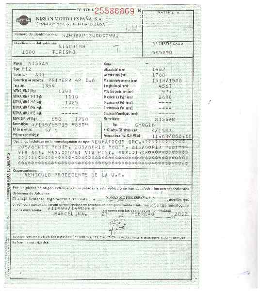 Infos du véhicule d'origine