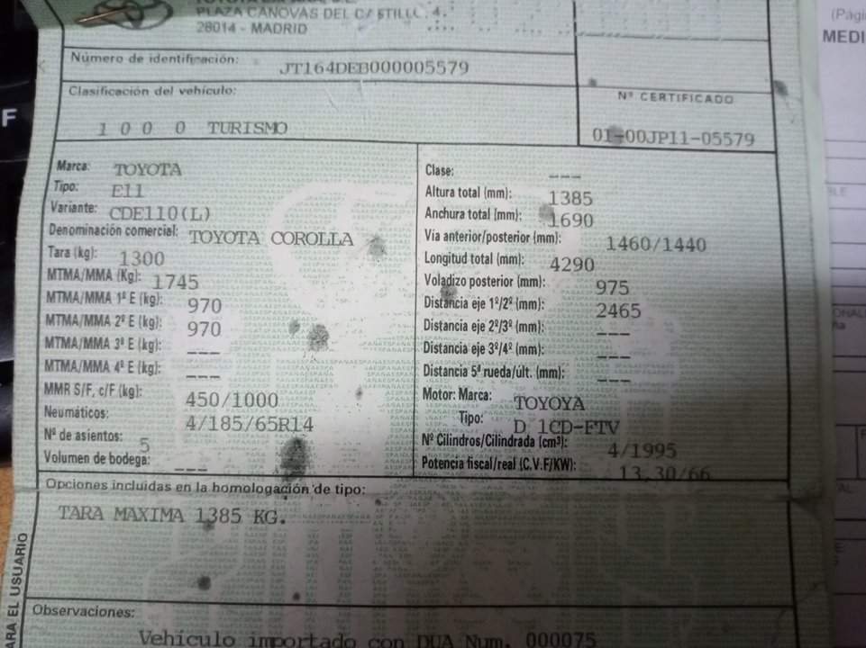 Infos du véhicule d'origine