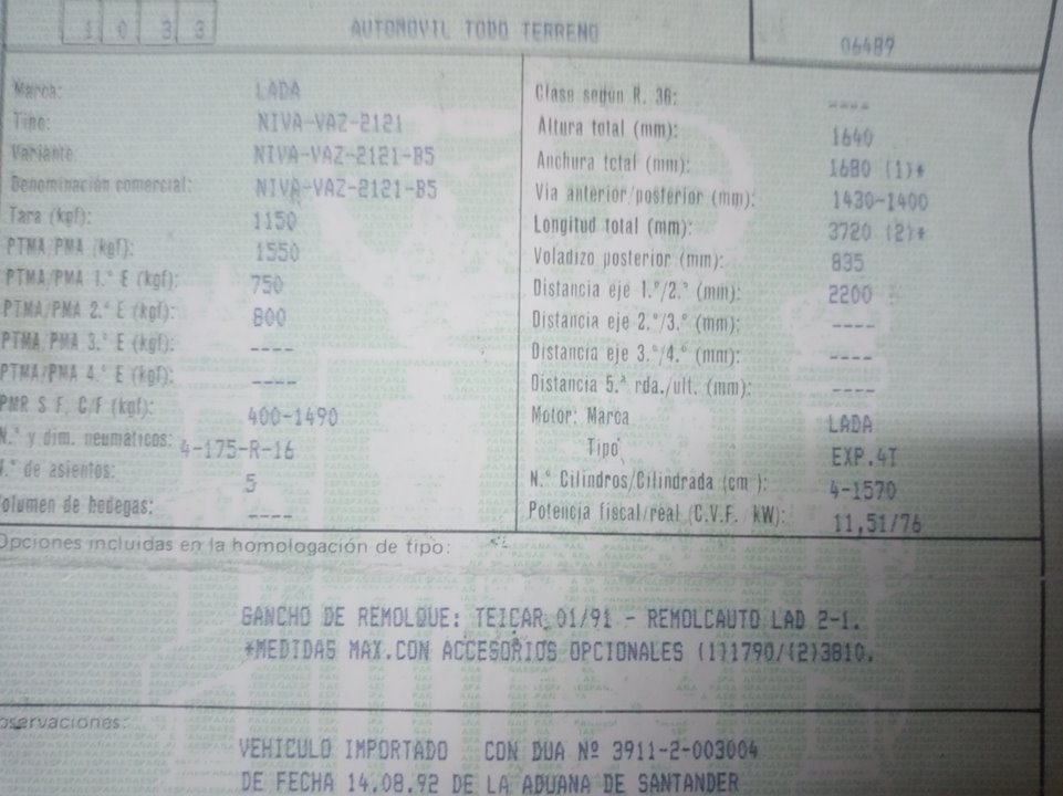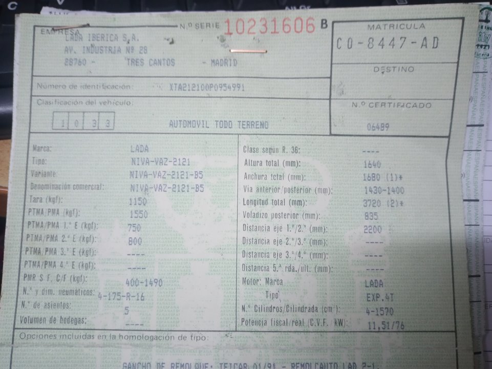 Infos du véhicule d'origine