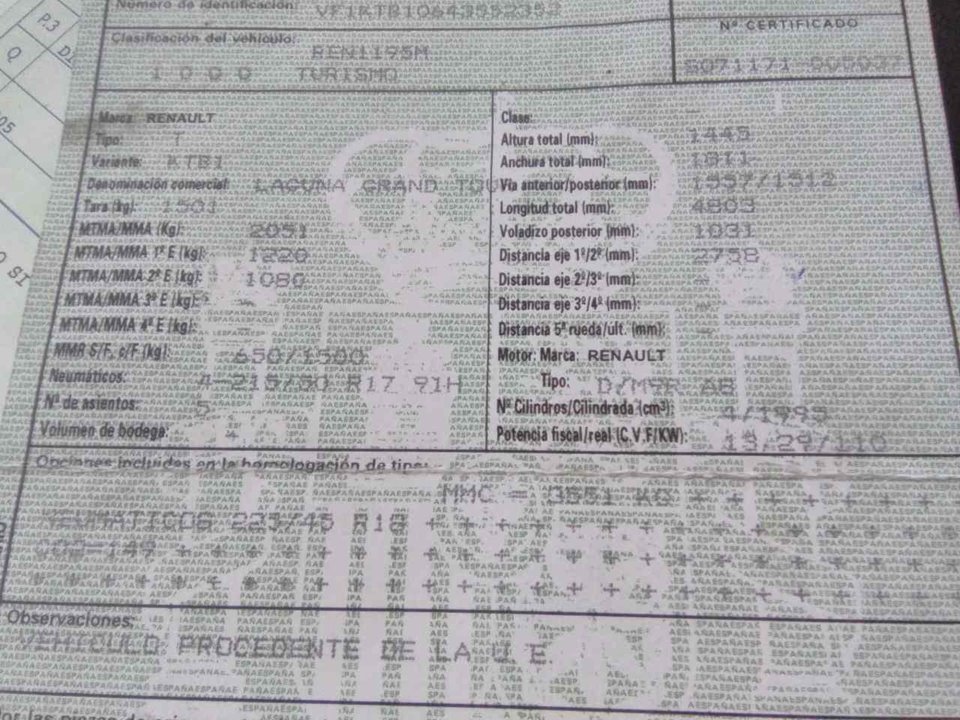 Infos du véhicule d'origine