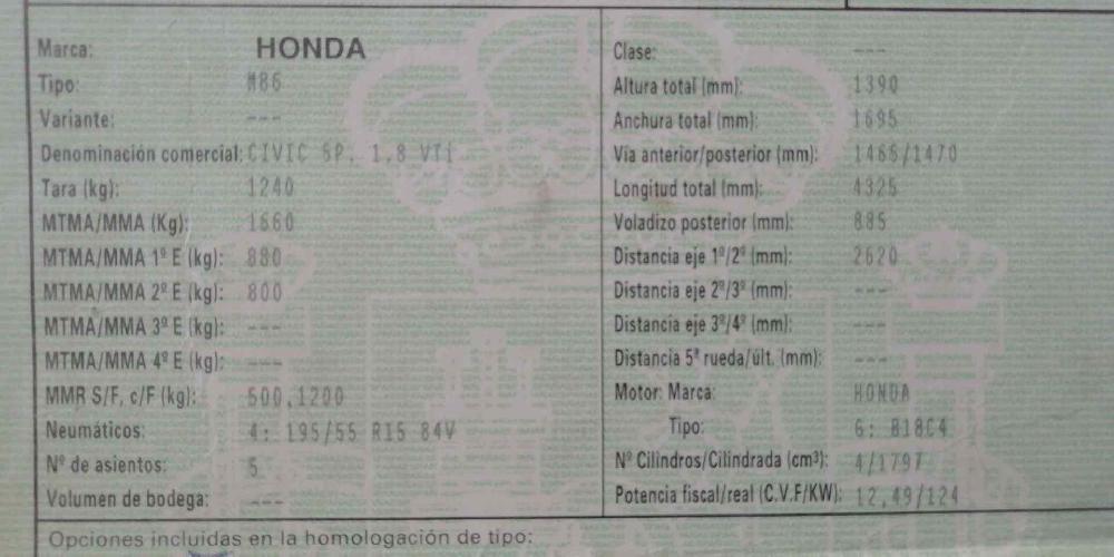 Infos du véhicule d'origine