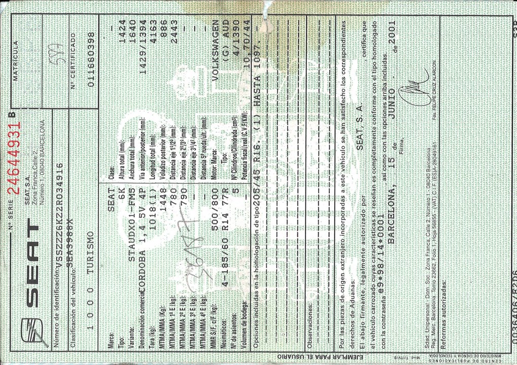 Infos du véhicule d'origine