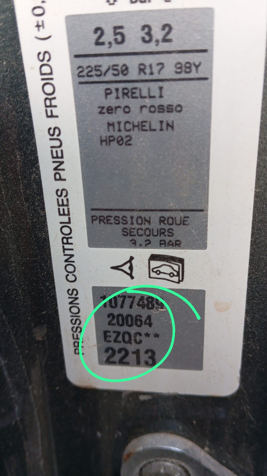 Infos du véhicule d'origine