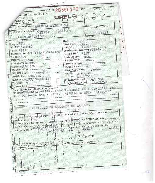 Infos du véhicule d'origine