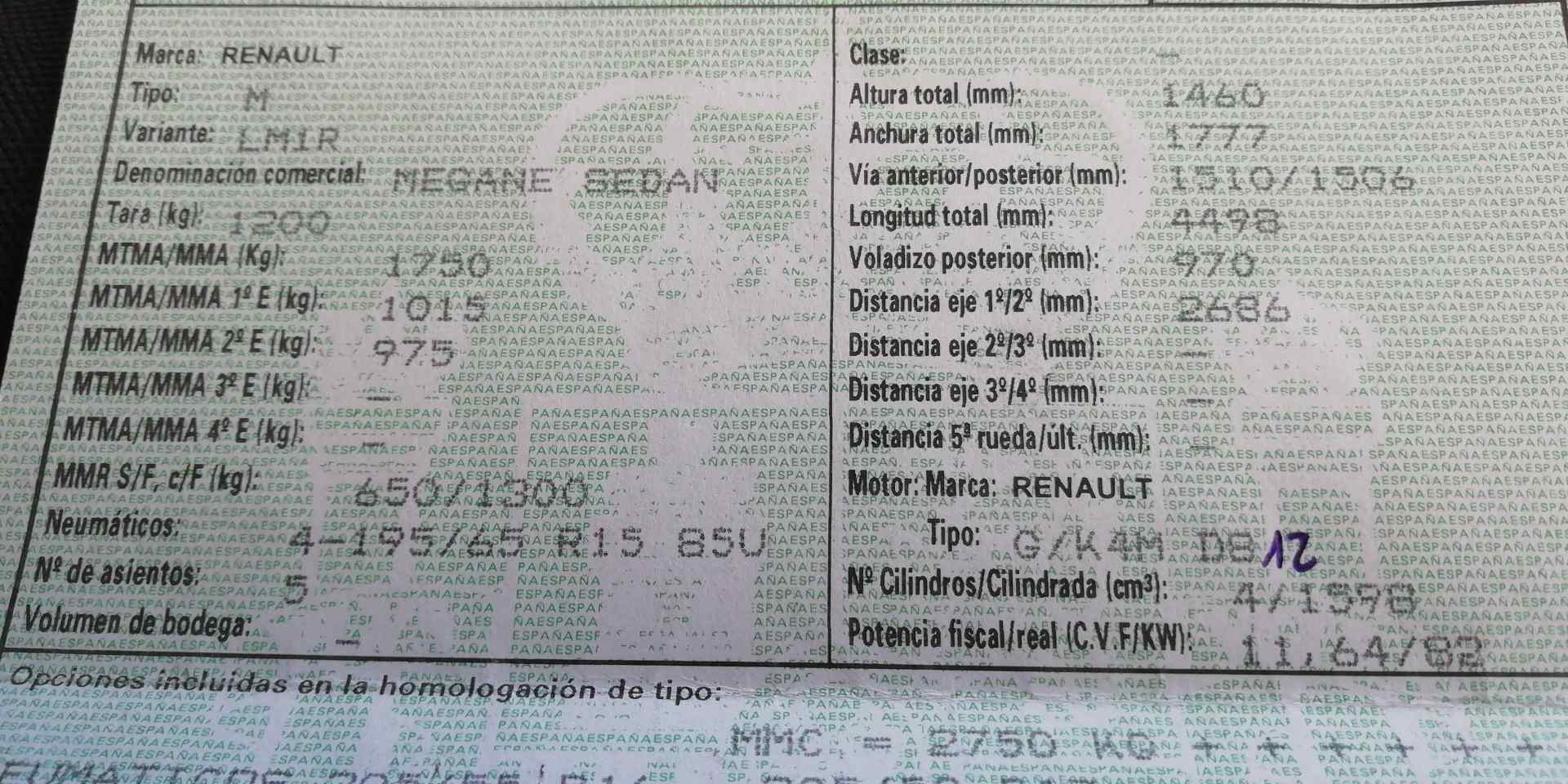 no es original ref N8626 - Energie: gasolina - Code moteur: K4M812 - Nombre de portes: 5