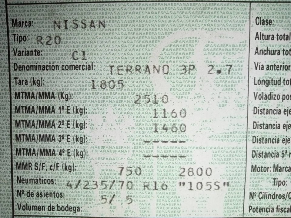 Infos du véhicule d'origine