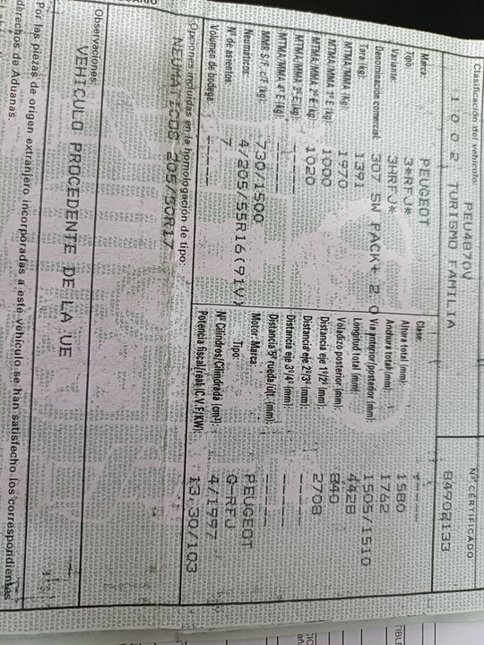 Infos du véhicule d'origine