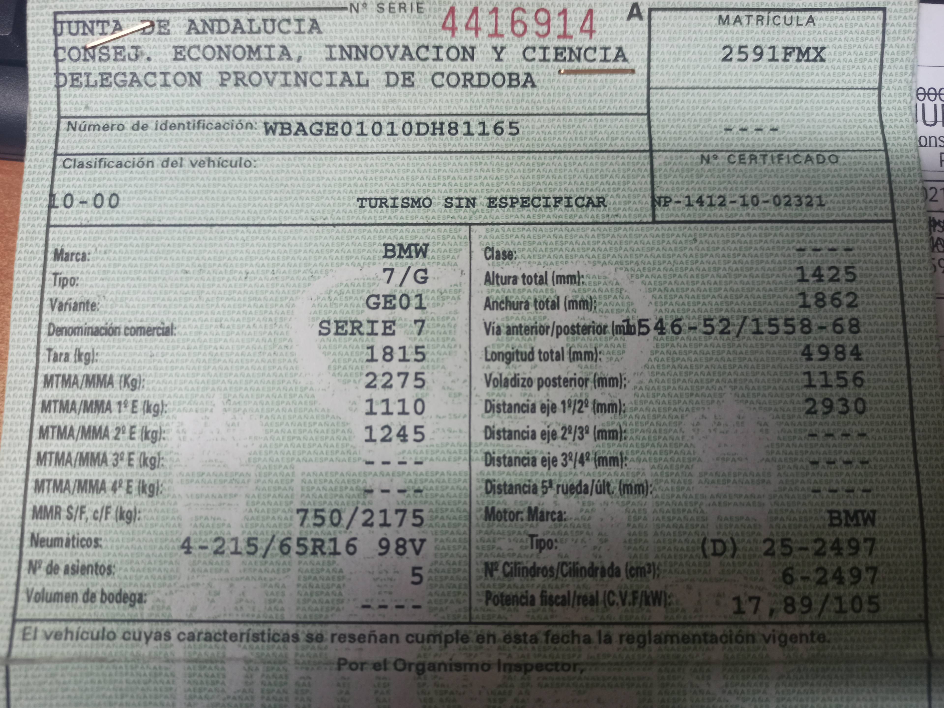 Infos du véhicule d'origine