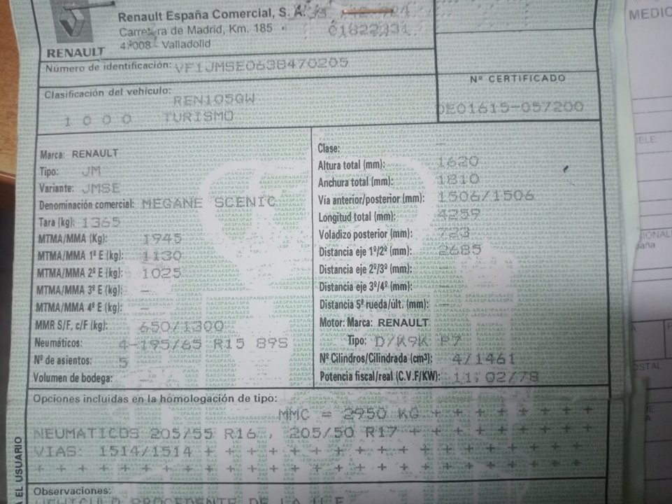 Infos du véhicule d'origine