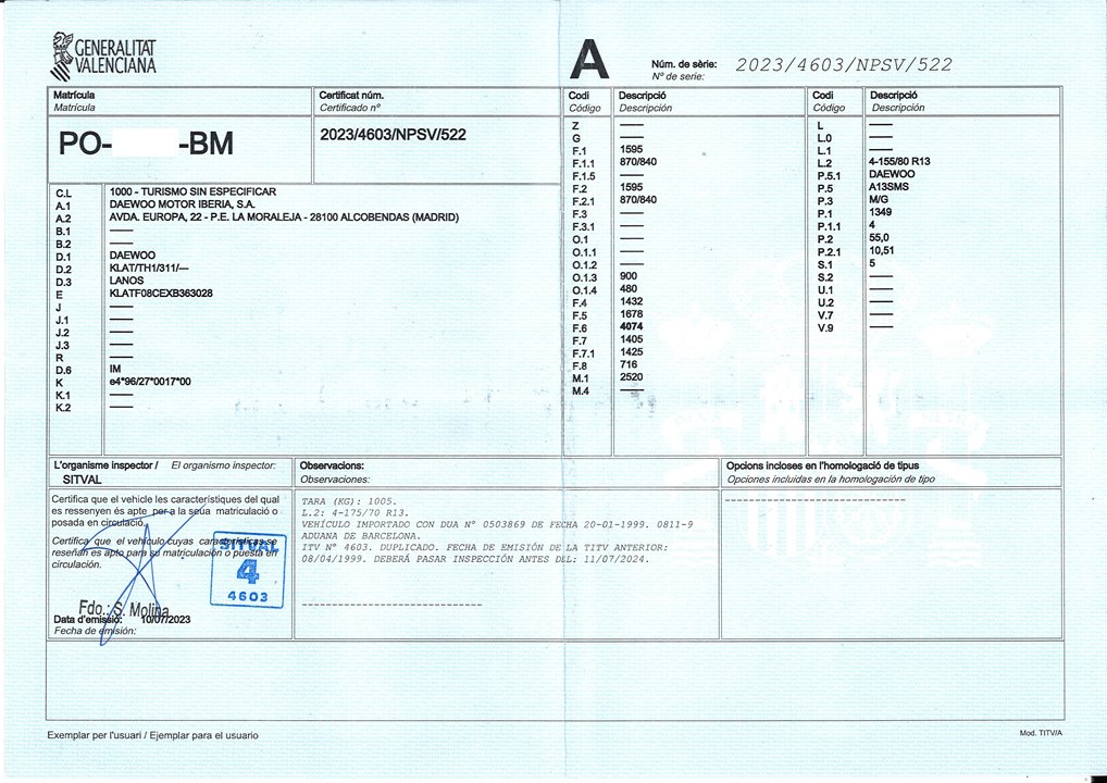 Infos du véhicule d'origine