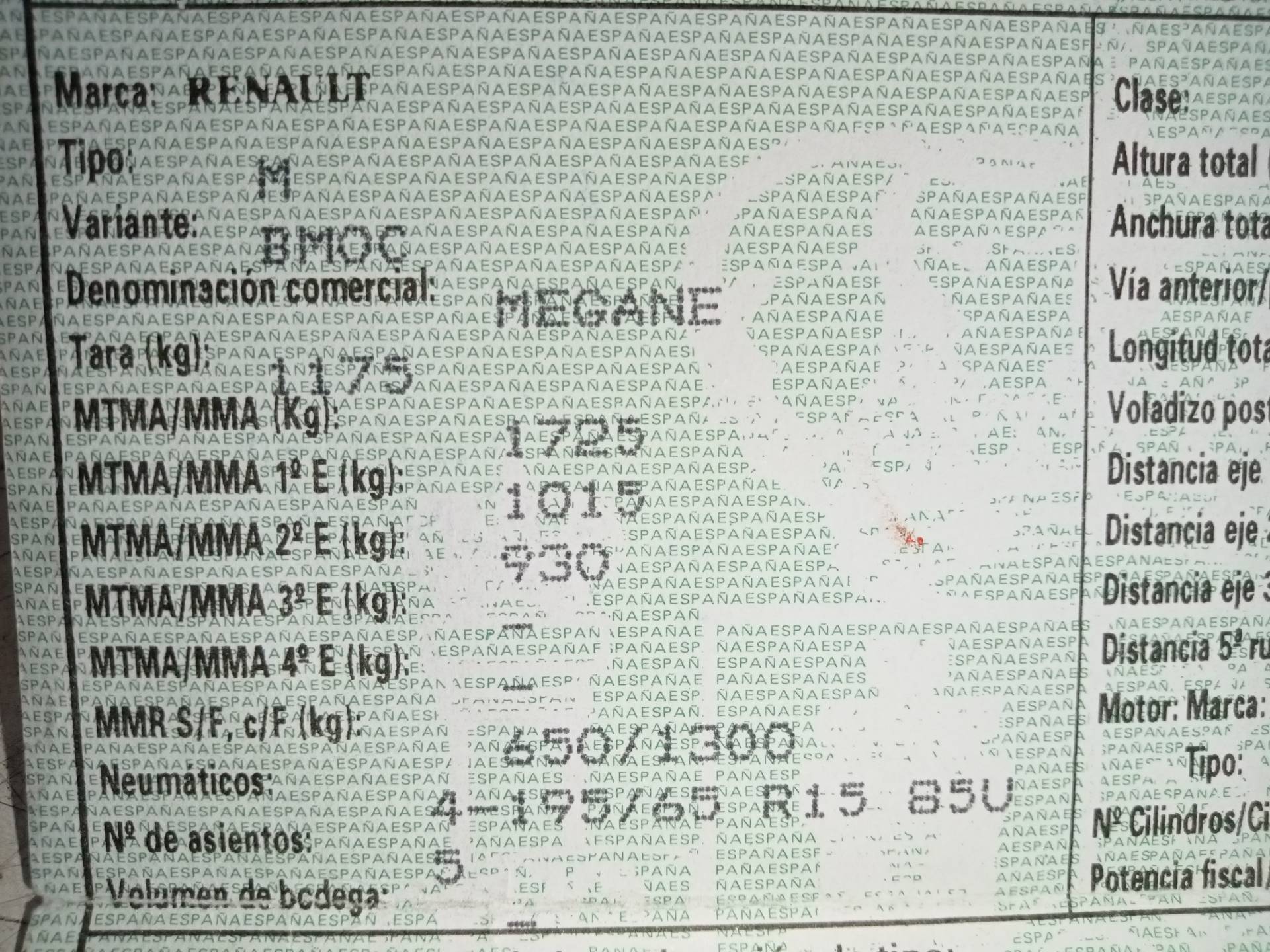 Energie: gasolina - Code moteur: K4M760 - Nombre de portes: 5