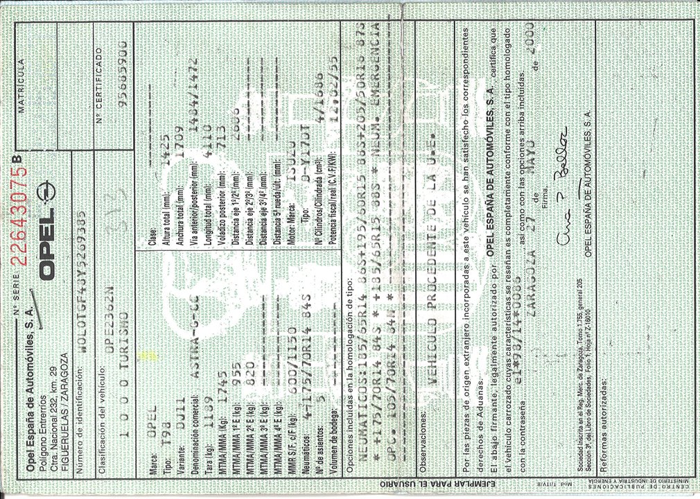Infos du véhicule d'origine