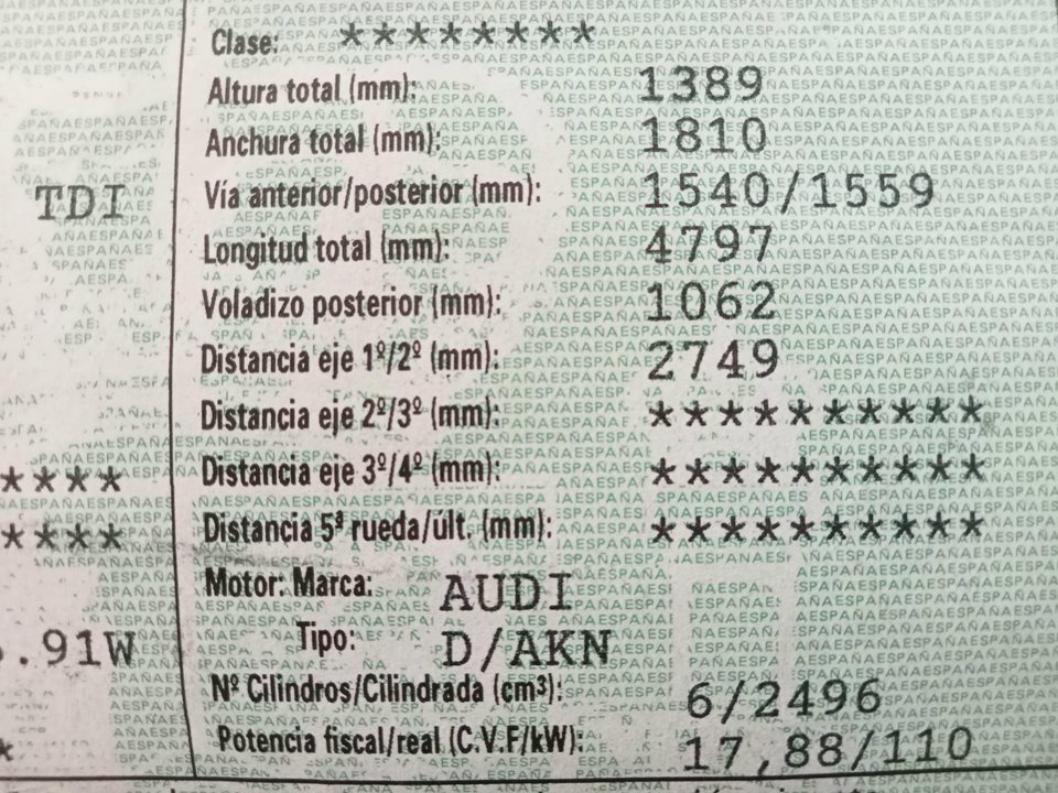INCLUYE ANTINIEBLAS Y REFUERZO 4B0807109. PARAGOLPES CON LEVES DESPERFECTOS. VER FOTOS - Energie: diesel - Code moteur: AKN - Nombre de portes: 5