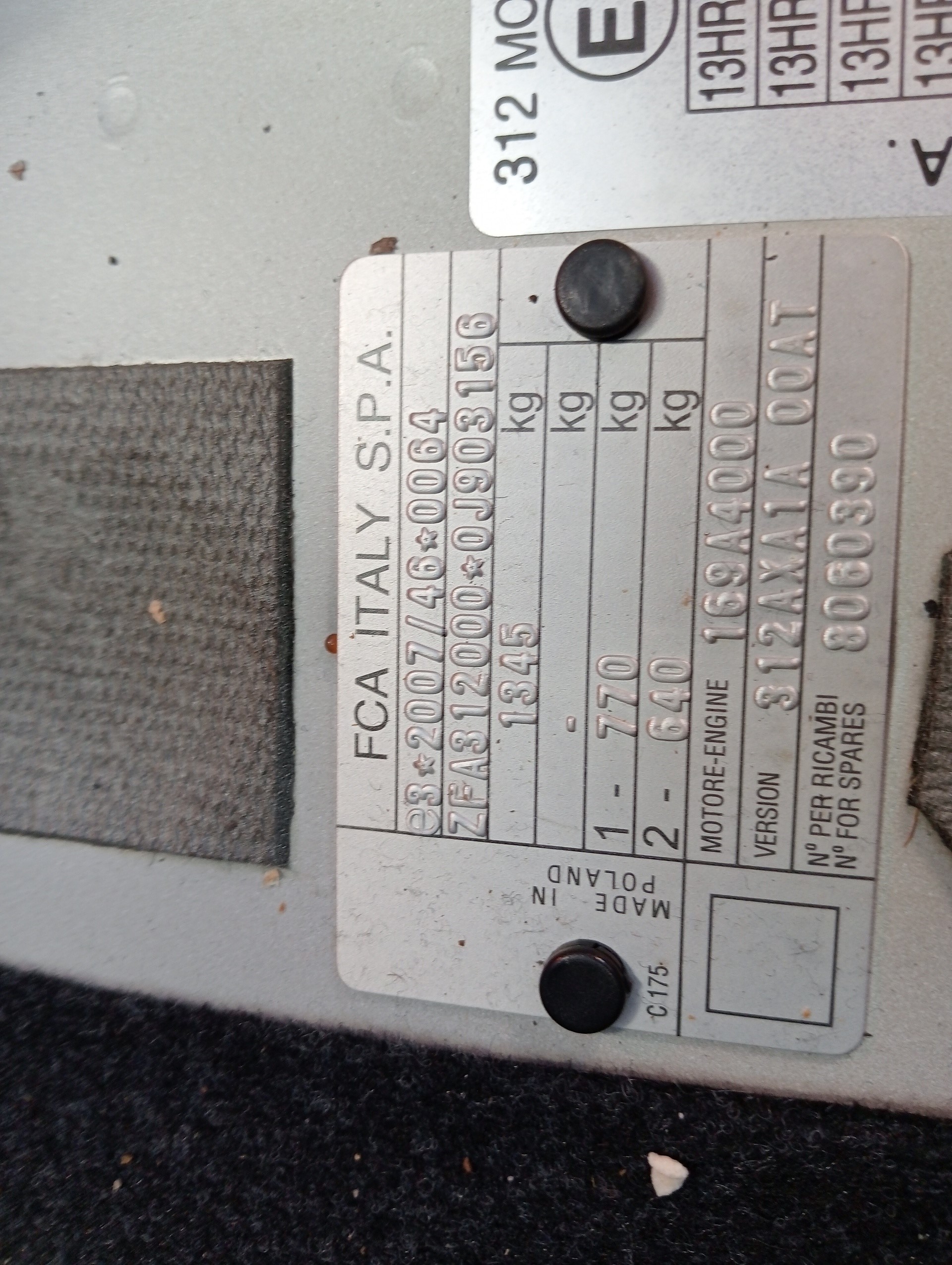 Code moteur 169A4.000