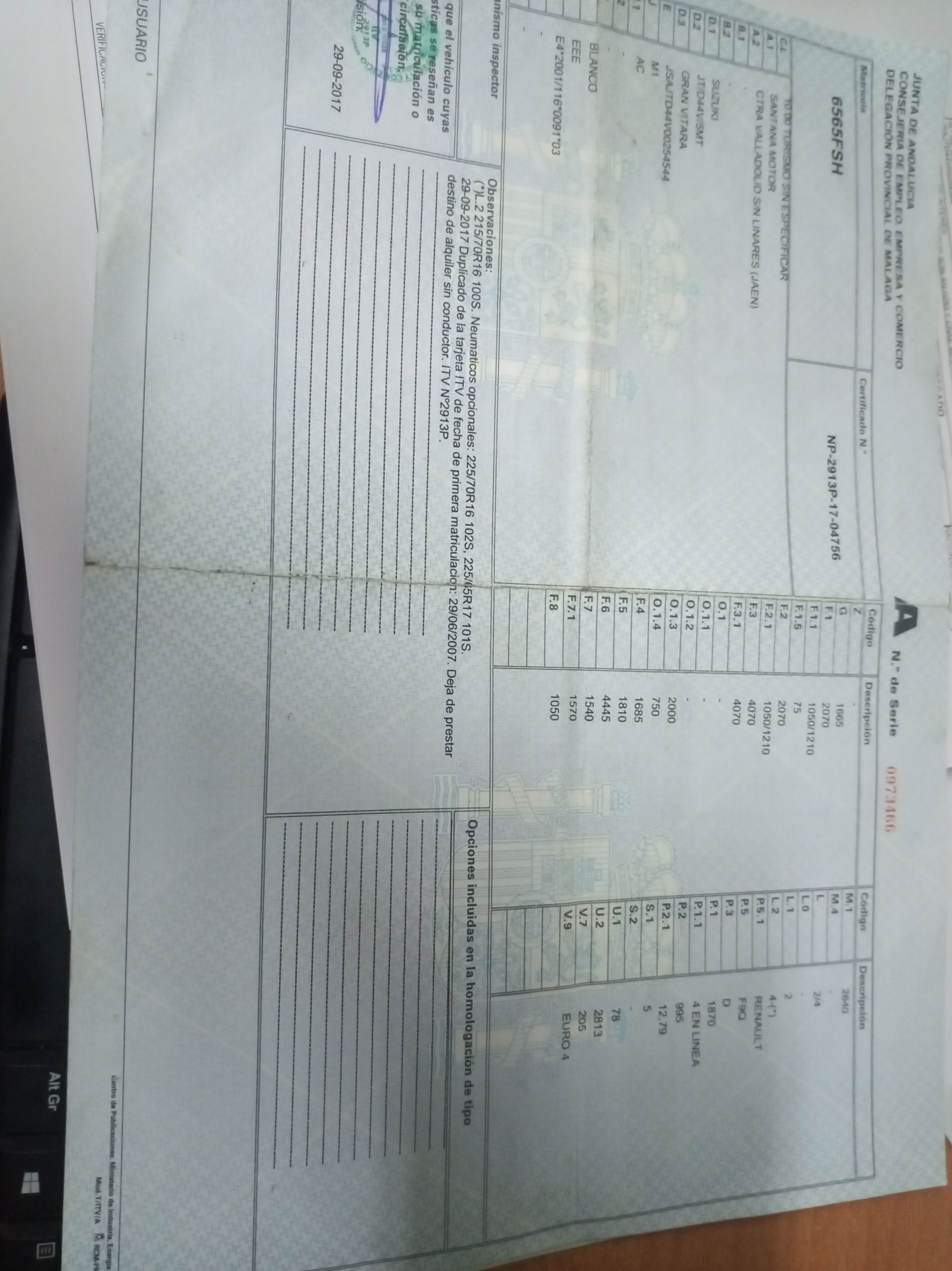 Infos du véhicule d'origine
