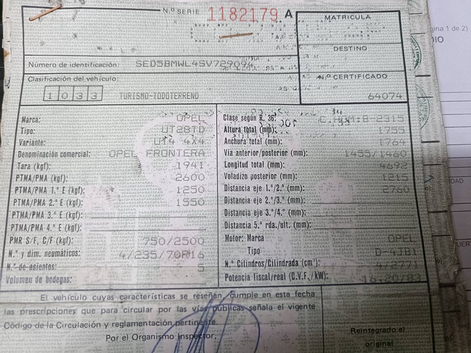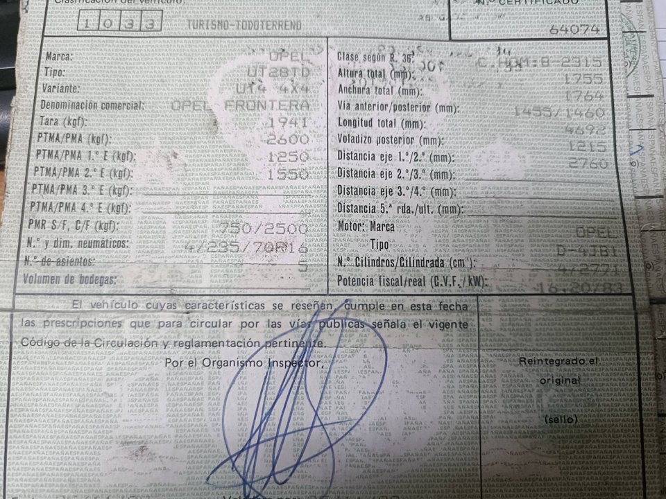 Infos du véhicule d'origine