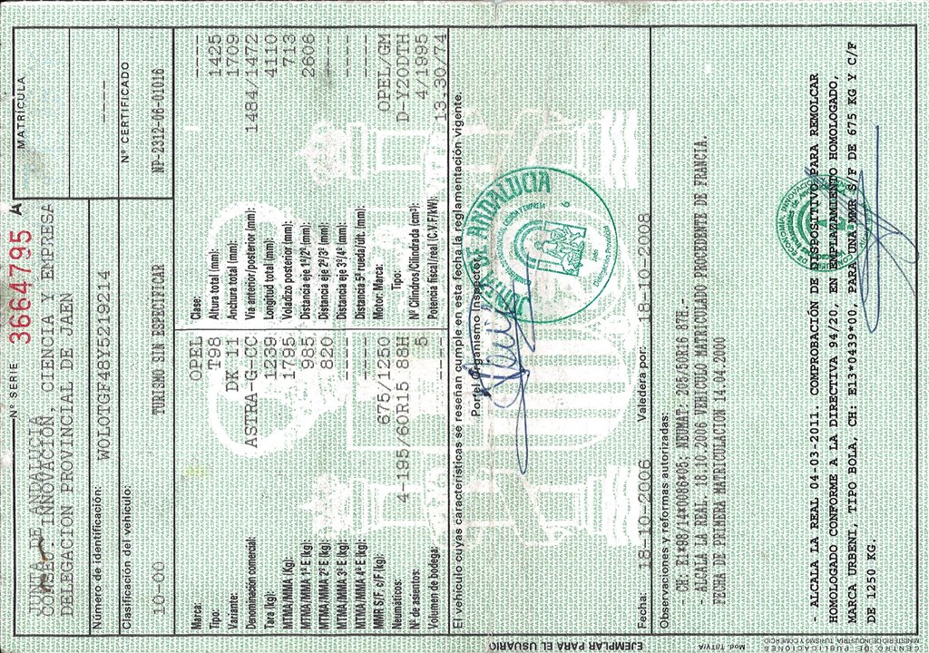Infos du véhicule d'origine