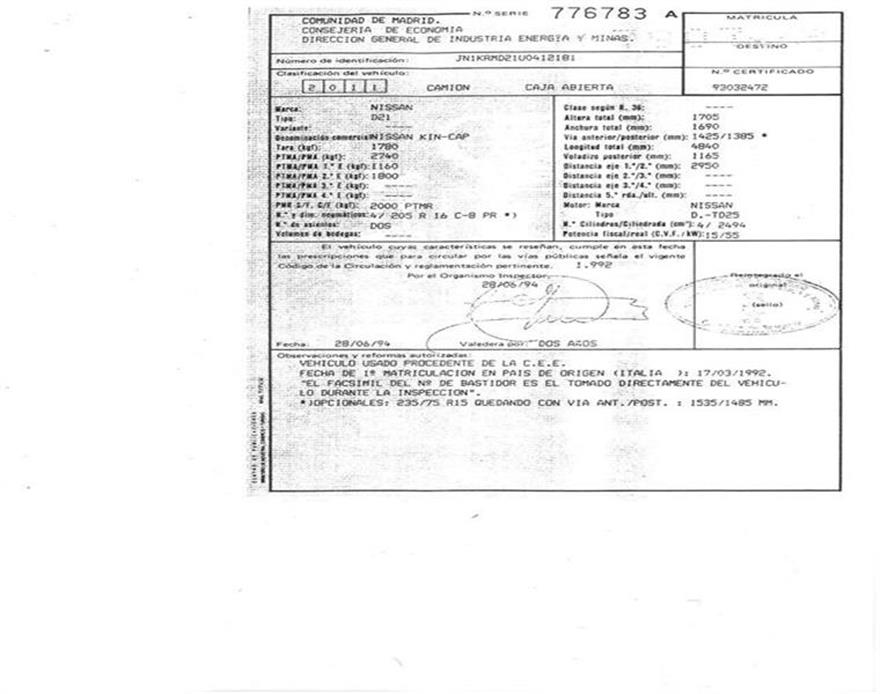 Infos du véhicule d'origine