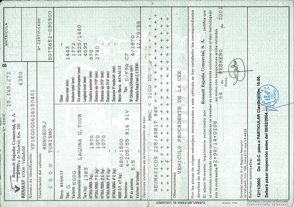 Infos du véhicule d'origine