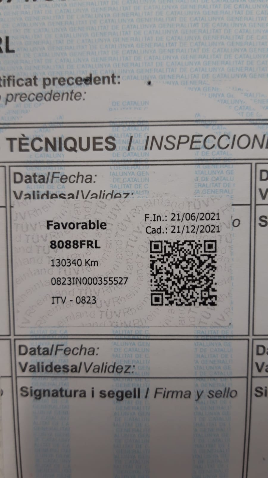 Infos du véhicule d'origine