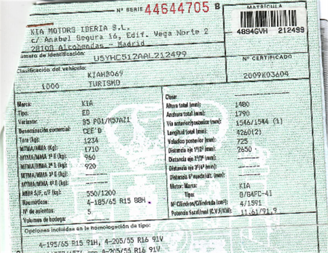 Infos du véhicule d'origine