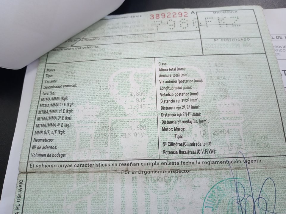 Infos du véhicule d'origine