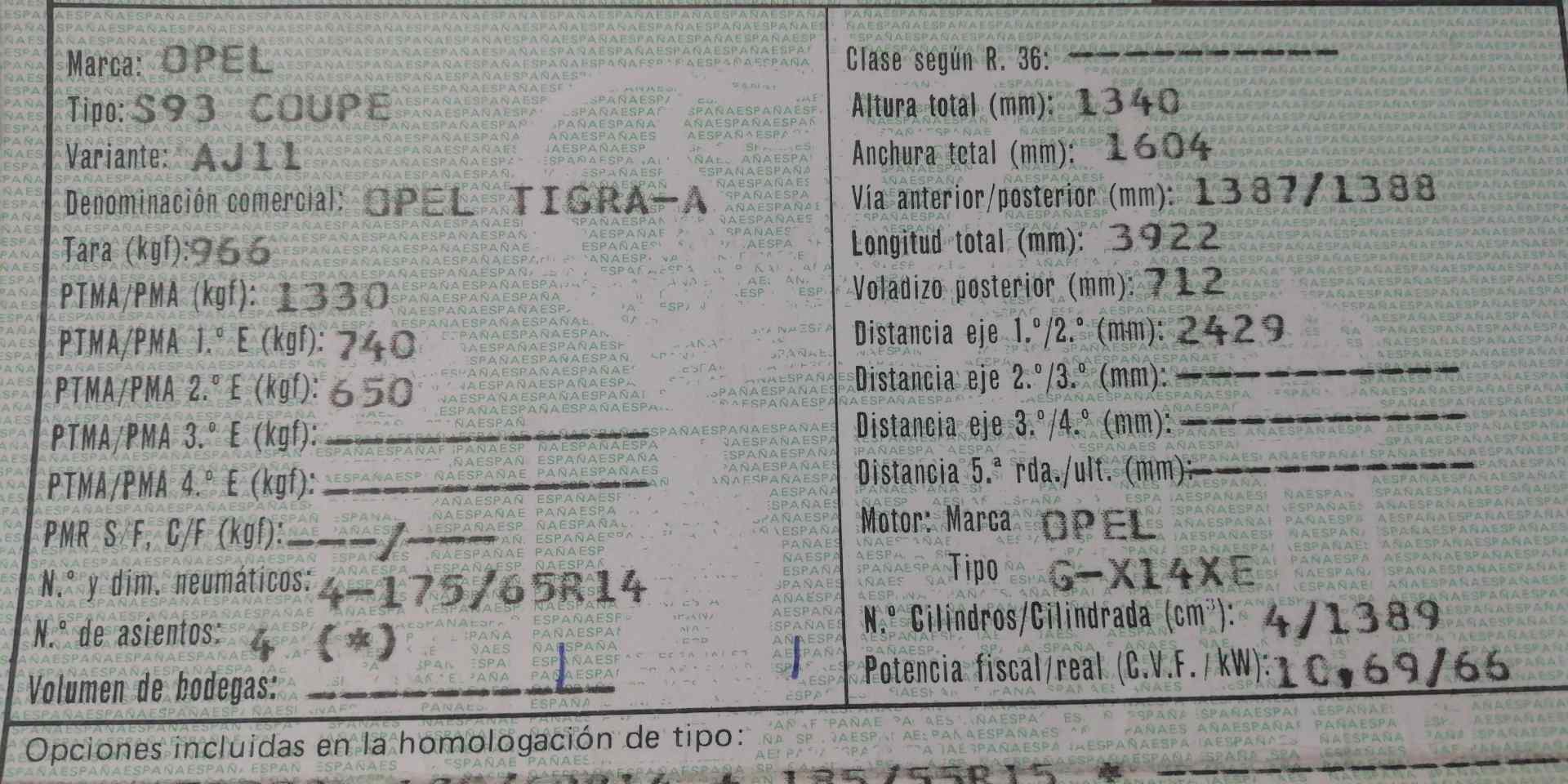 0399350p2946 - Energie: gasolina - Code moteur: X14XE - Nombre de portes: 5
